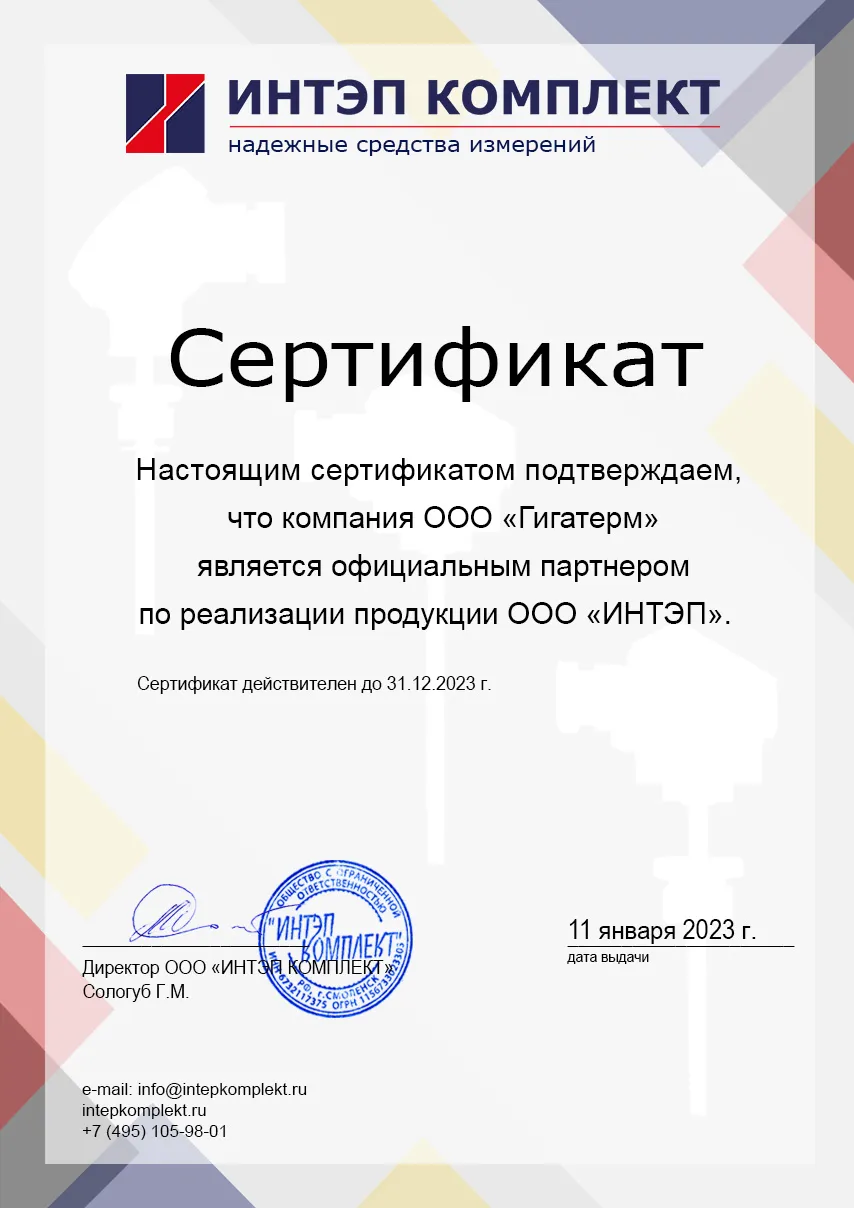 Сертификат ИНТЭП Гигатерм